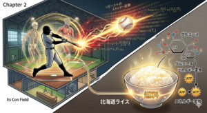 そうだ、打撃力向上の秘密は「エネルギーの効率的な変換」にあるのではないか。 shimoは推理の糸をたぐり寄せた。 昨シーズン終了後、新庄監督はメディアから姿を消し、チームは徹底した非公開のキャンプを行った。そこで行われていたのは、単なるスイングの軌道修正だけではない。おそらく、バイオメカニクスに基づいた肉体改造と、極限まで計算された「食の管理」だ。 筋肉を動かし、爆発的なスイングスピードを生み出す最大のエネルギー源は「糖質(炭水化物)」である。食糧法が改正され、米の価値と需給バランスが社会的なテーマとなる中、ファイターズの裏方たちは、地元北海道の良質な米や、あんぱんのような即効性のある糖質を、選手たちに最も適切なタイミングで摂取させていたのではないか。 血を吐くようなウエイトトレーニングの直後に、計算し尽くされたカロリーを流し込む。冬の間、彼らは雪に閉ざされた室内練習場で、自らの肉体を巨大な「火力発電所」へと改造していたのだ。