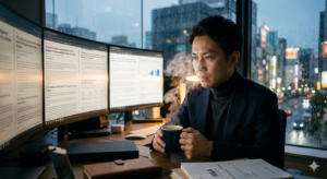 東京のオフィスビルの一室。窓の外には冷たい春の雨が降っている。 企業法務とM&Aを専門とし、数々の国際的な経済事件の裏側を読み解いてきた弁護士、shimoは、デスクに積み上げられた分厚い契約書のコピーと、今朝のニュースフィードを交互に眺めていた。